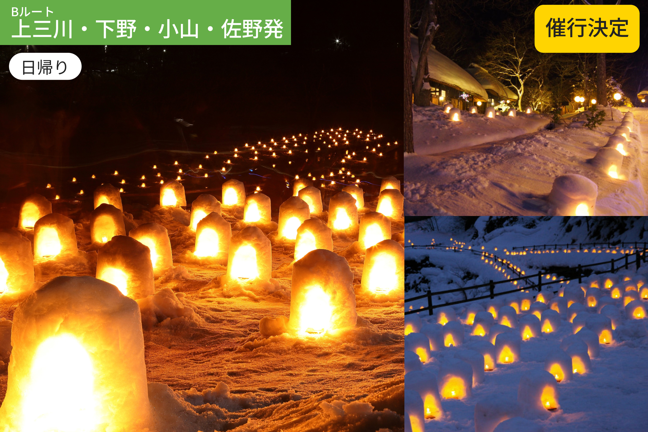 【Bルート:上三川・下野・小山・佐野発】幻想の雪景色へ!日光湯西川温泉かまくら祭り【お弁当付】